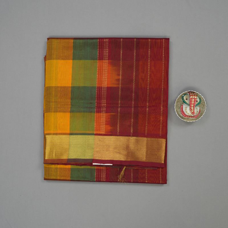 Hayagrivas Handloom Multicolour Checks Pure Silk Cotton Saree with Maroon Border KBE942H8-9