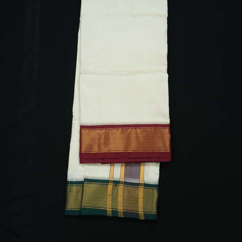 Hayagrivas Handloom 10*6 Silk Dhoti with Ganga Jamuna border KBE1272I4-1