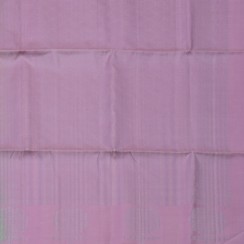 This exquisite pista green and mint green Pure Soft Silk saree features delicate jari work across the body, offering a seamless and borderless silhouette. Complemented by a beautiful lavender pallu and blouse, this rich and classy drape blends refreshing pastel tones with sophisticated craftsmanship, priced at Rs.13310.