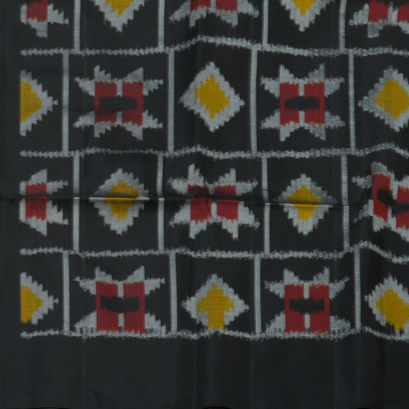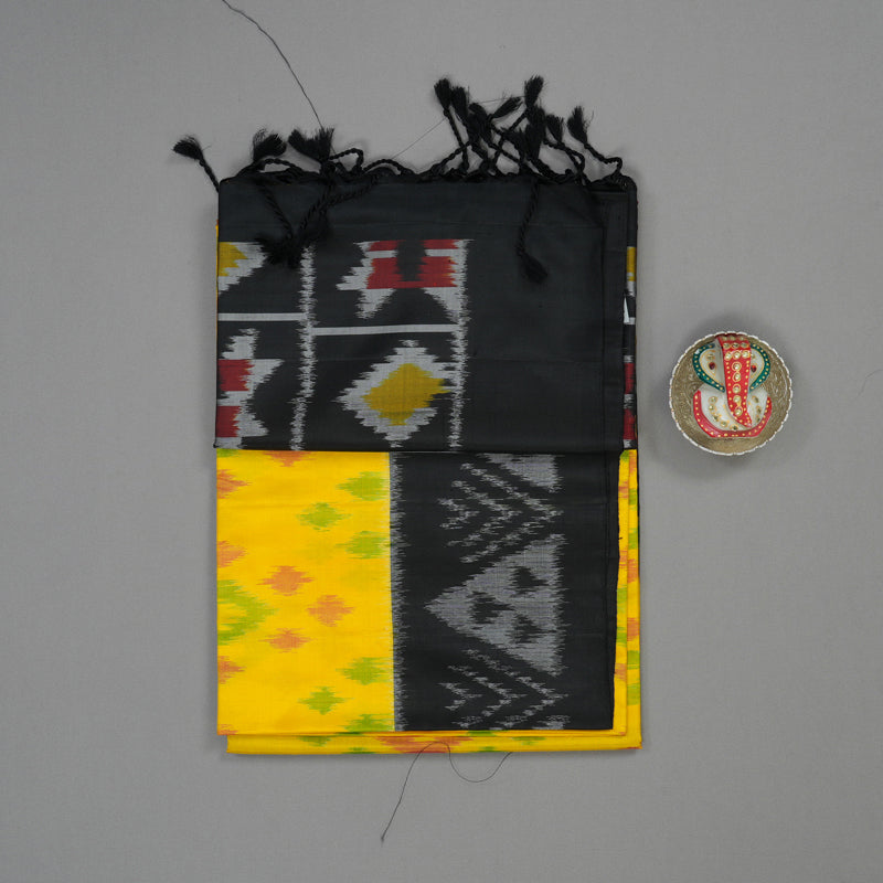 Step out in a bold and vibrant combination with this yellow pure soft silk saree. Featuring authentic Ikkat patterns, it is perfectly balanced by a striking black contrast blouse and pallu. Designed for versatility, it is an ideal choice for both formal office wear and casual wear.