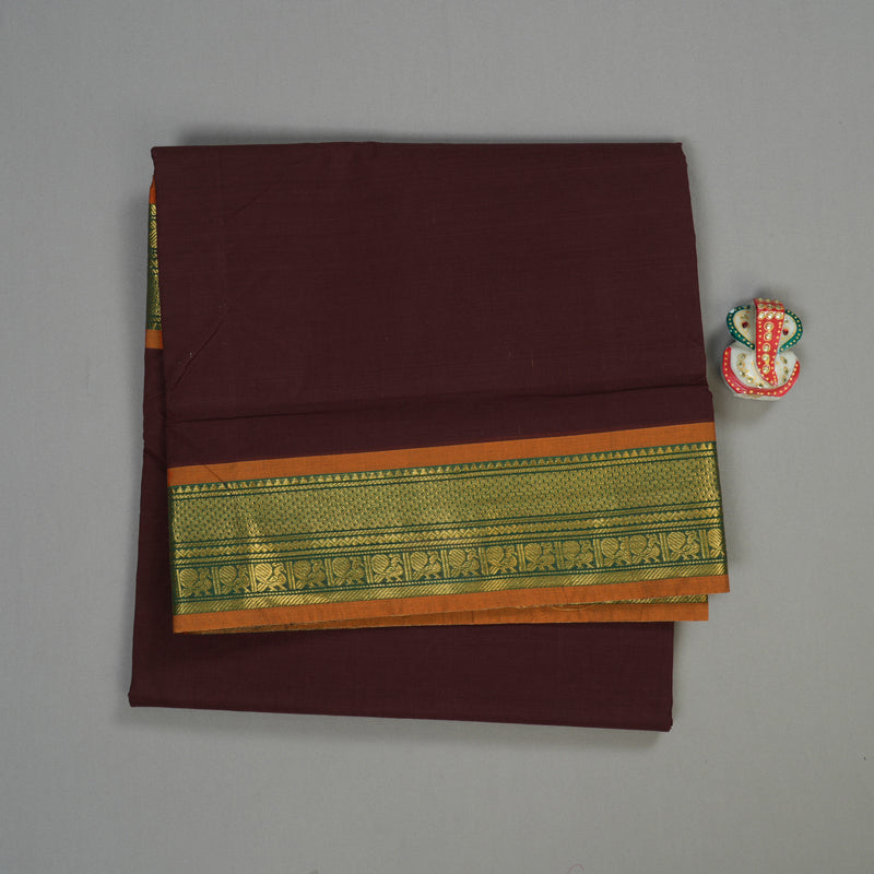 Hayagrivas Handloom Ten Yard Cotton Saree in Classic Dark Maroon KBE233D2-6