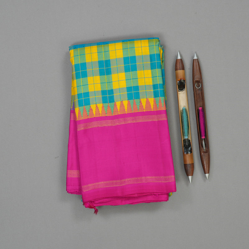 Hayagrivas Handloom Multicolour Checks Kanjivaram Silk Saree with Magenta Pink border KBE1336J17-1