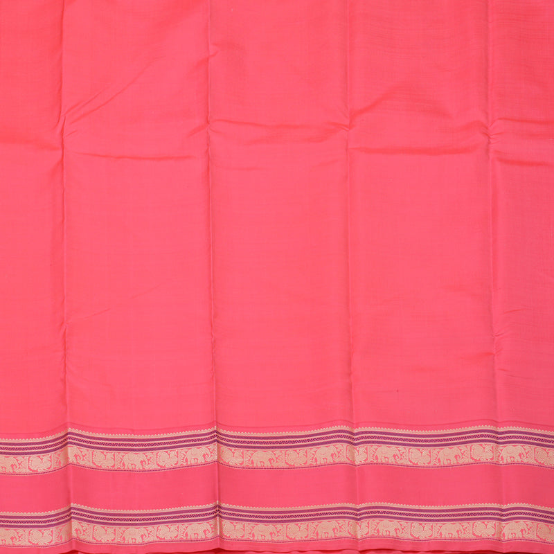 The saree is finished with a vibrant, bright pink pallu and blouse, offering a pop of festive colour that remains beautifully refined. Priced at ₹21,420, its understated yet high-quality finish makes it perfect for casual occasions or social gatherings.