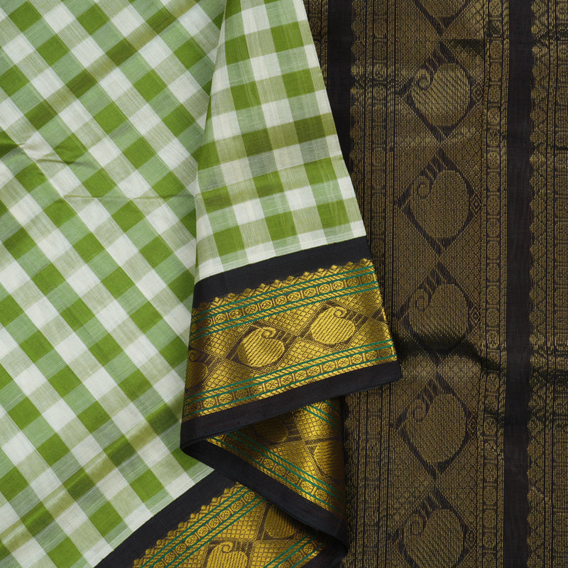 Hayagrivas Green & Half-White Checks Pure Silk Cotton Saree KBE1875L7-3
