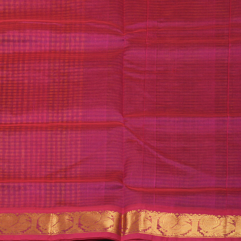 This understated base is brilliantly brought to life by a contrast pink pallu and matching blouse, creating a vibrant and festive finish. Perfectly blending breathable comfort with a luxurious silken sheen, this lovely saree is available for Rs. 7,560.