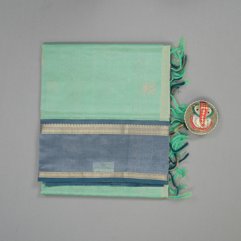 Hayagrivas Light Mint Green Pure Kanchi Silk Cotton Saree with Bluish Grey Border KBE1695K4-2