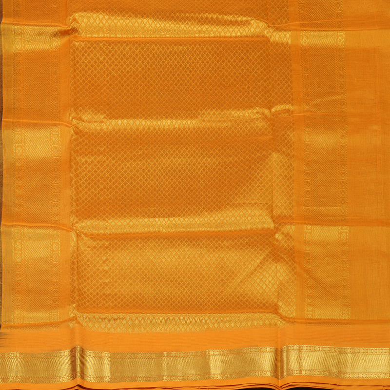 This majestic pure silk cotton saree features a deep, lustrous Royal Blue body that exudes timeless elegance. It is beautifully accented by a traditional temple rekku border, adding a sharp and heritage-inspired touch to the silhouette. The cool blue tones are brilliantly balanced by a contrast turmeric yellow pallu and matching blouse, creating a vibrant, auspicious look perfect for any celebration.