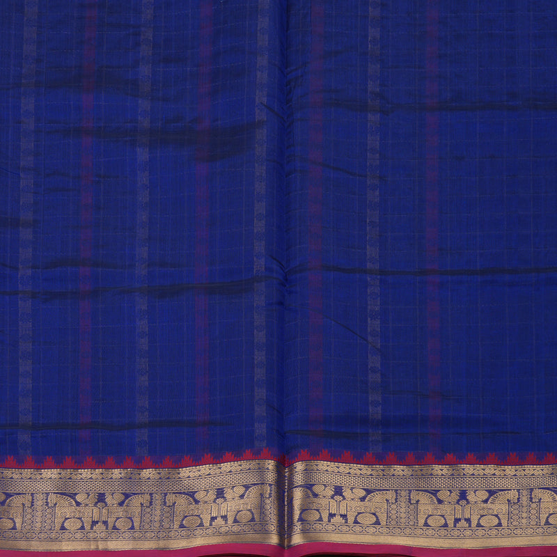 Royal blue silk-cotton saree with refined thread checks complemented by charming annam and chakaram motifs on the body. The border adds vibrant contrast selevdge and traditional elegance.