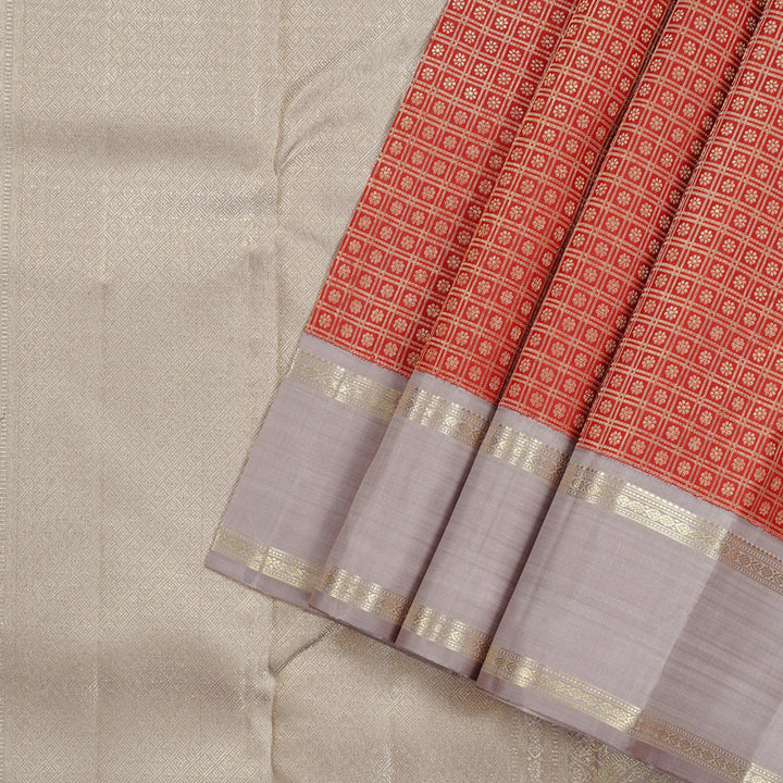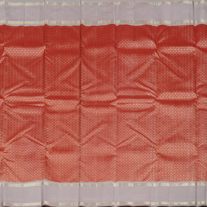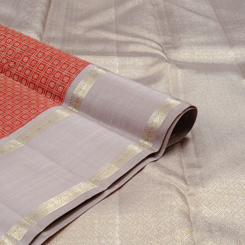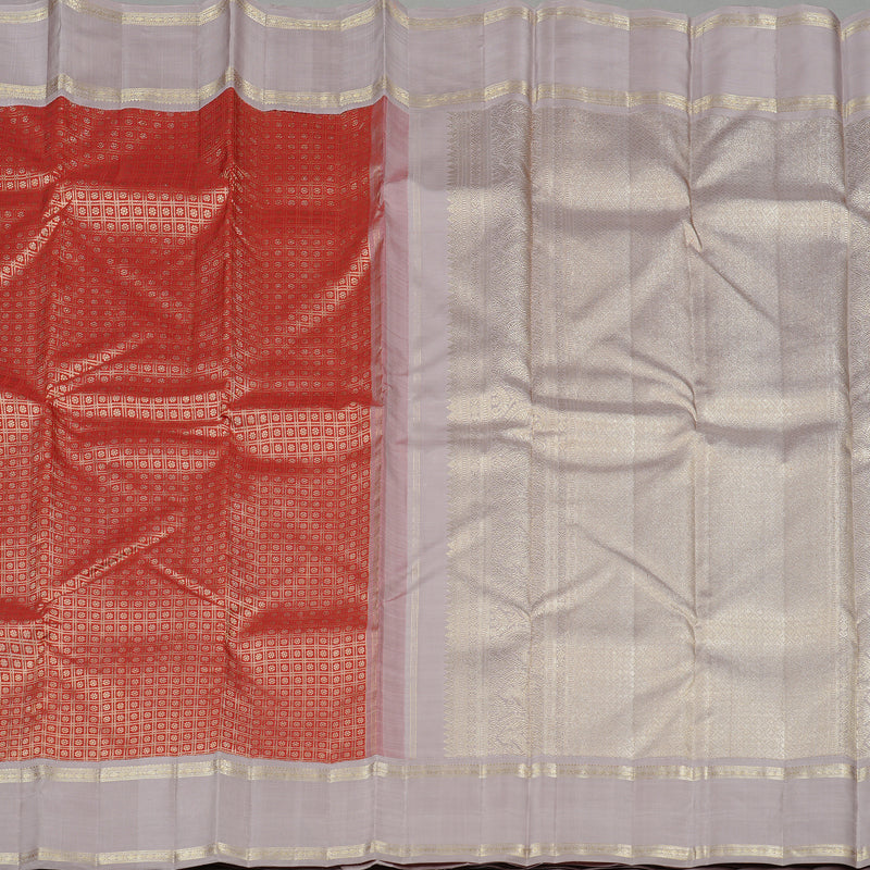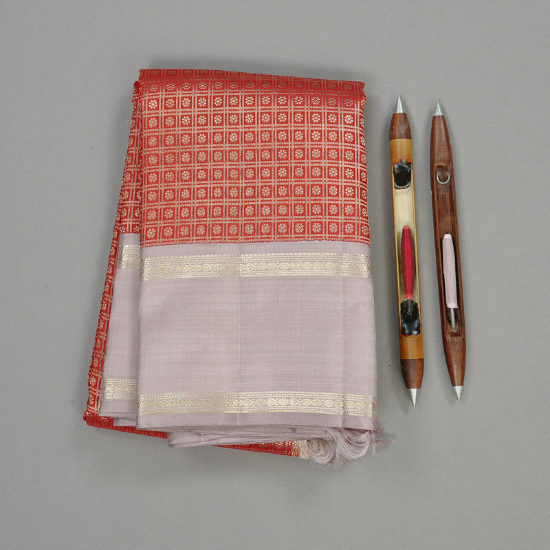 Crafted for the grandest bridal occasions, this Hayagrivas Red Handloom Kanjivaram Silk Saree features a striking powder pink korvai border that creates a timeless contrast. The body is intricately adorned with heavy floral buttas in gold zari, representing abundance and prosperity. The traditional retta pet border further amplifies the regal elegance of this saree, making it a statement piece for weddings, festive rituals, and temple ceremonies.