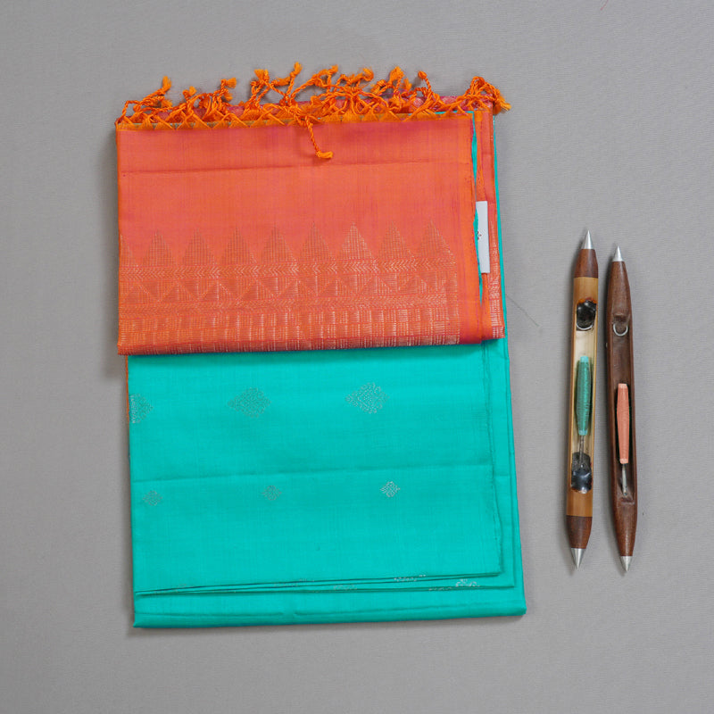 Hayagrivas Adorable Teal Blue Handloom Soft Silk Saree KBD1509A2-2
