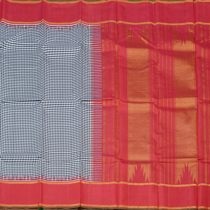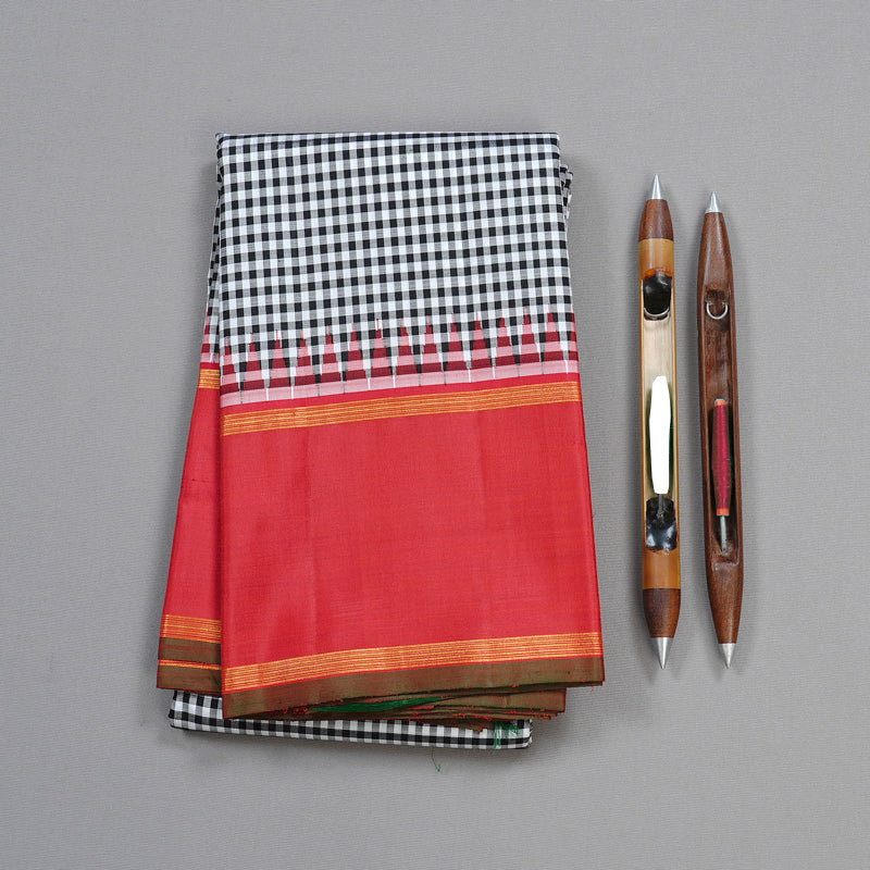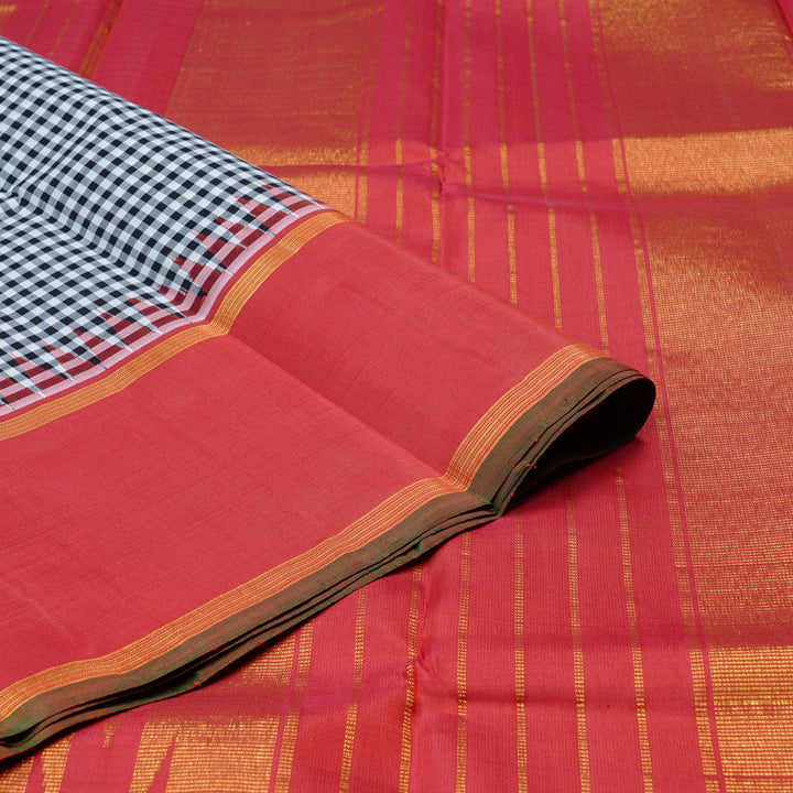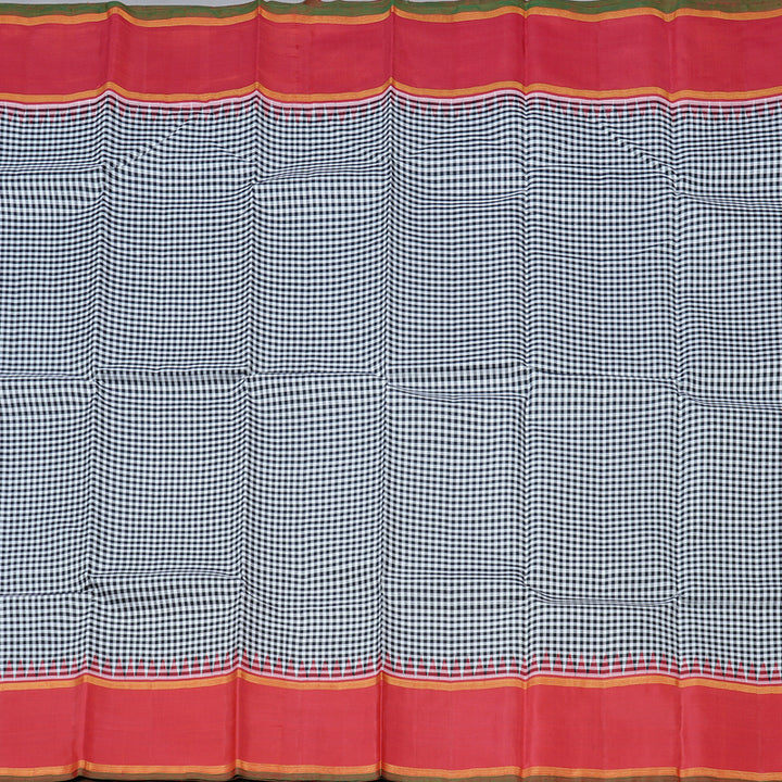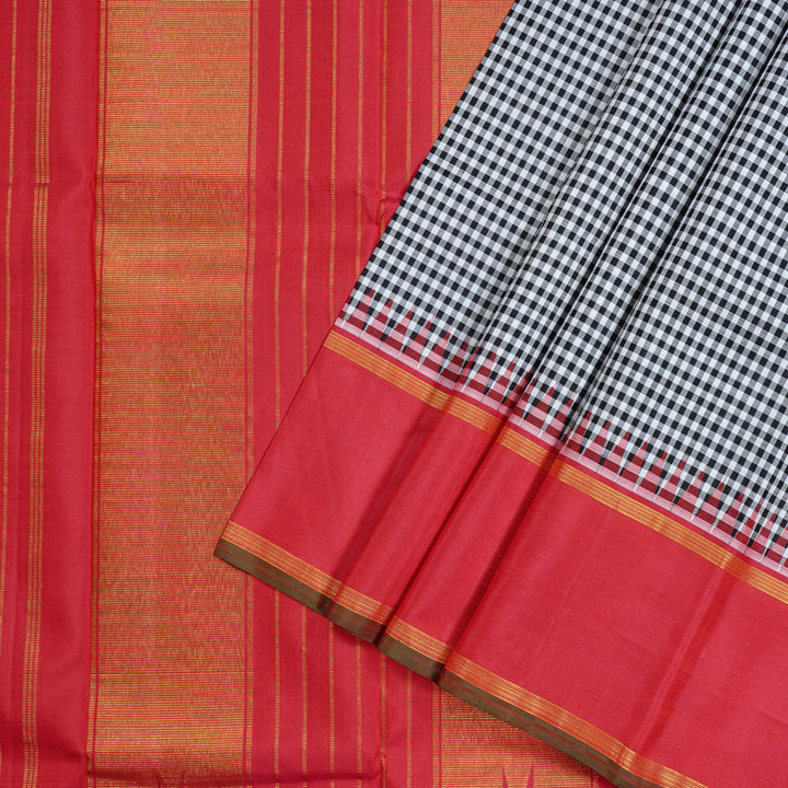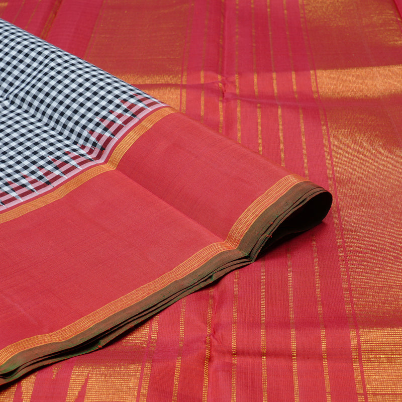 Hayagrivas Black And White Checks Handloom Kanjivaram Silk Saree with Red Border KBD1669A2-1