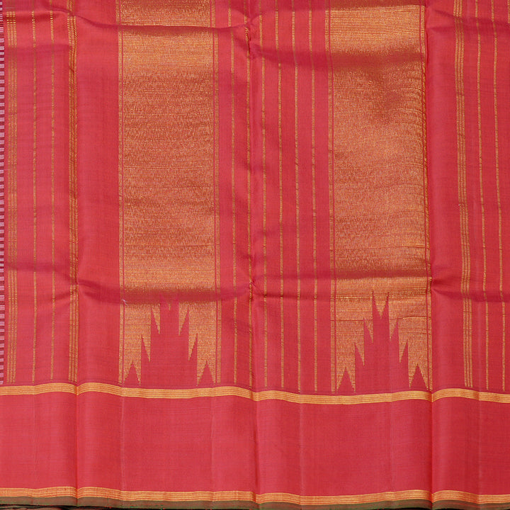 A perfect blend of tradition and minimalism, this Black and White Checks Handloom Kanjivaram Silk Saree is a classic design that never goes out of style. The striking red border, featuring temple borders and Retta Pet weaving, adds a vibrant contrast to the monochrome checks.