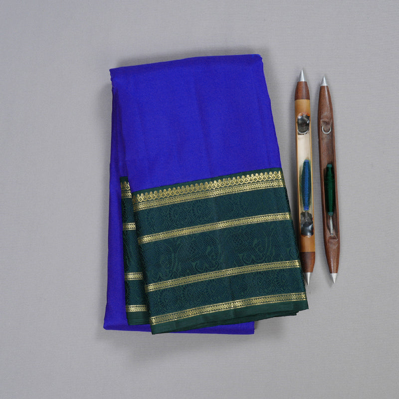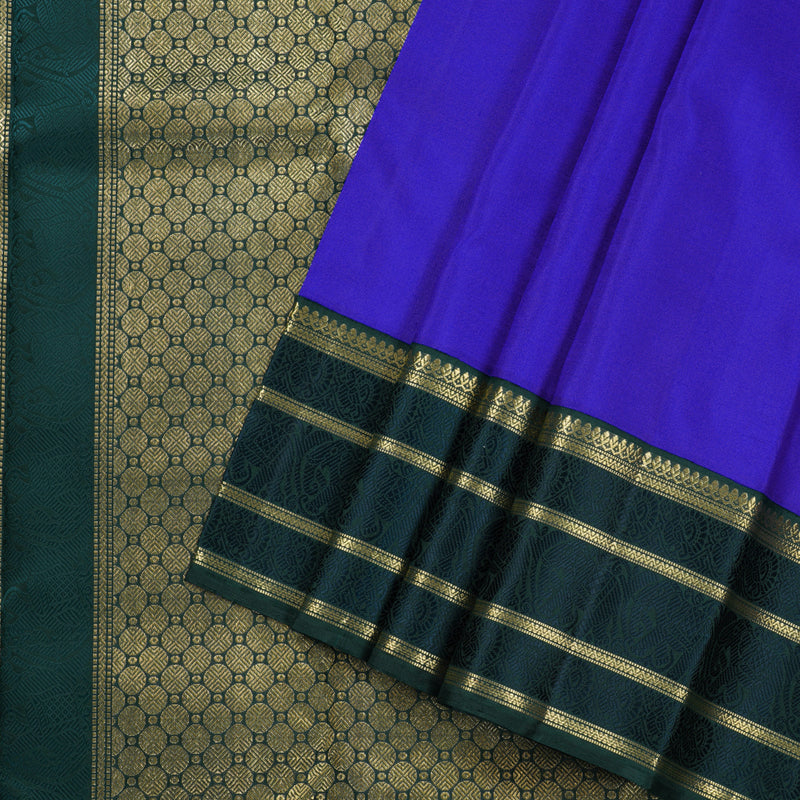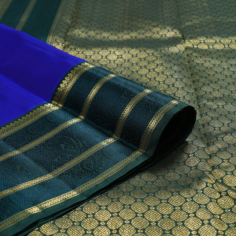Hayagrivas Blue Handloom Kanjivaram Silk Saree with Peacock Green Border BD550-SBS