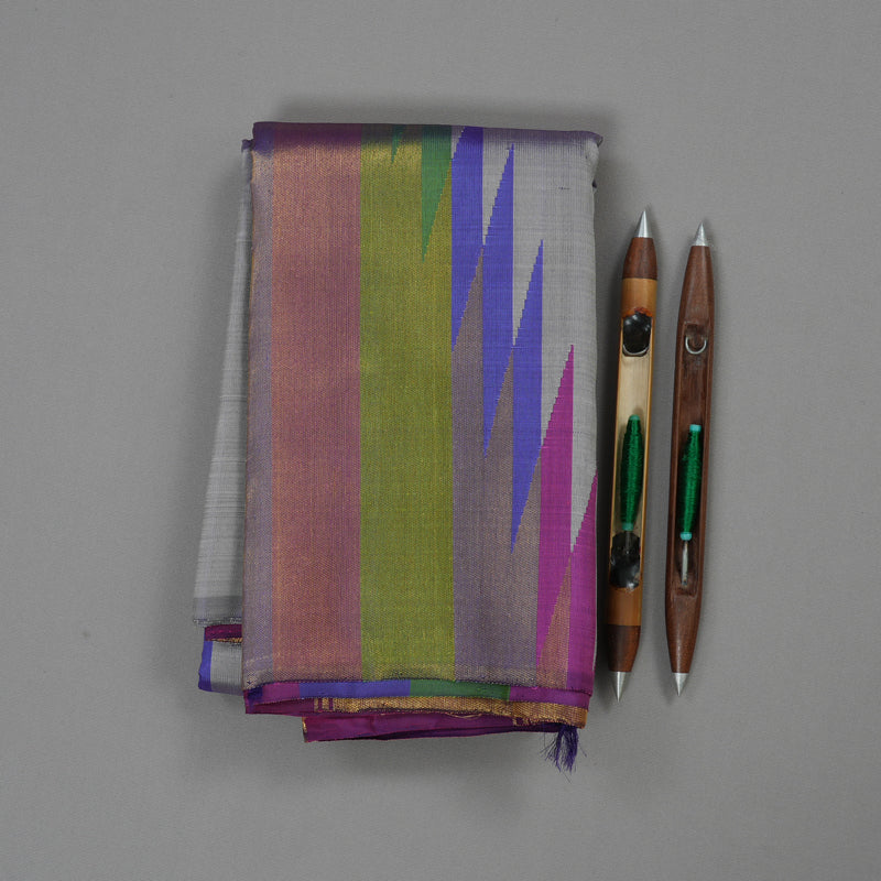 Hayagrivas Bluish Grey Handloom Kanjivaram Silk Saree with Multi Colour Border KBE270E4-1