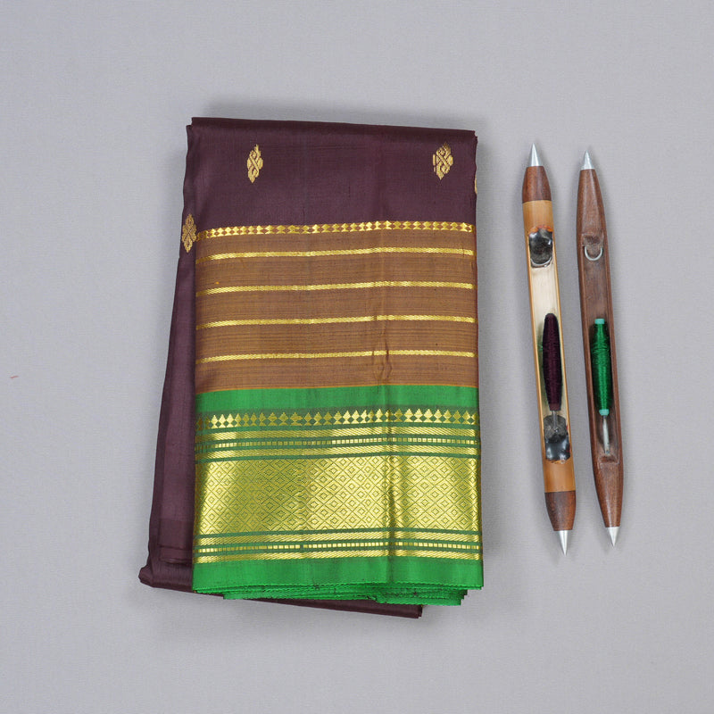 Hayagrivas Dark Brown Handloom Kanjivaram Silk Saree with Mehandi Green Border with KBD1867B2-5
