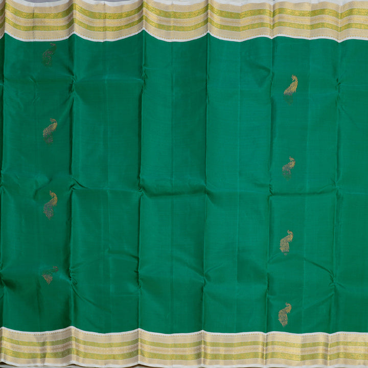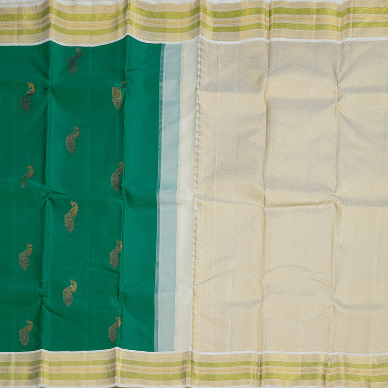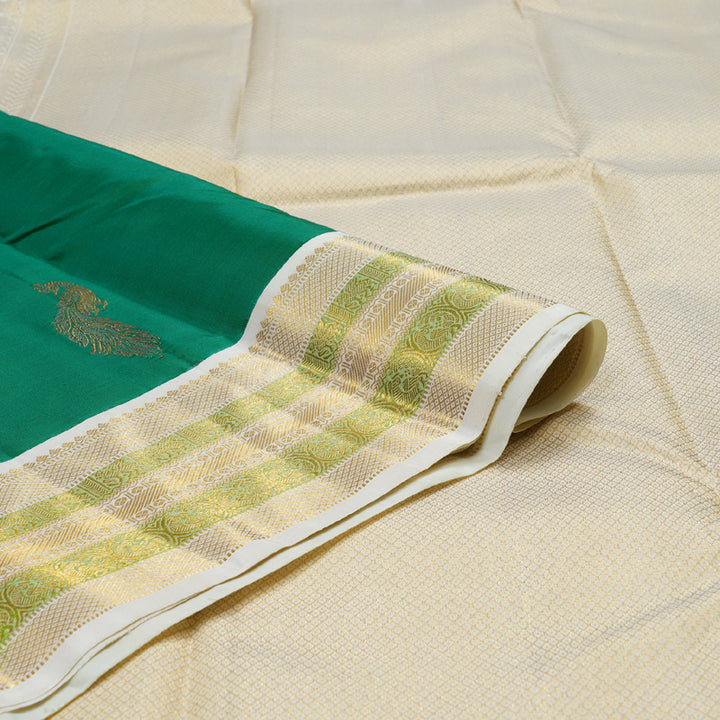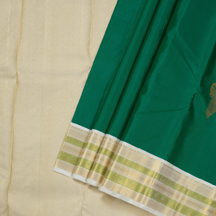 Hayagrivas Dark Green Handloom Kanjivaram Silk Saree with Half White Border BBD1485L15-1