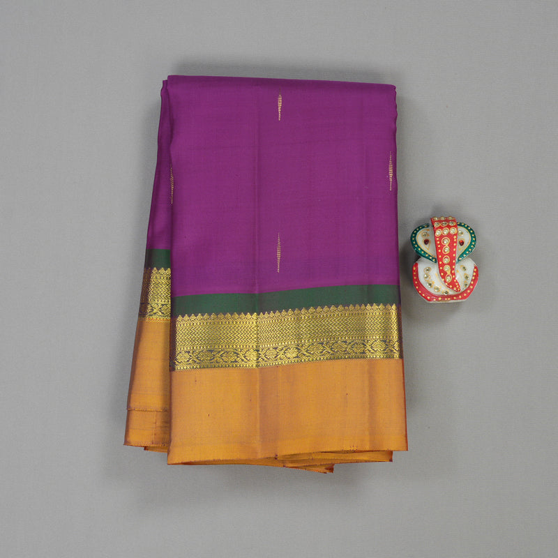 Hayagrivas Dark Purple Handloom Kanjivaram Silk Saree with Honey Mustard Border KBE317E2-15