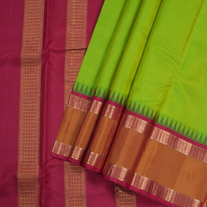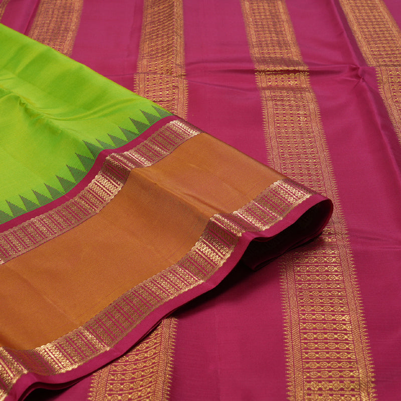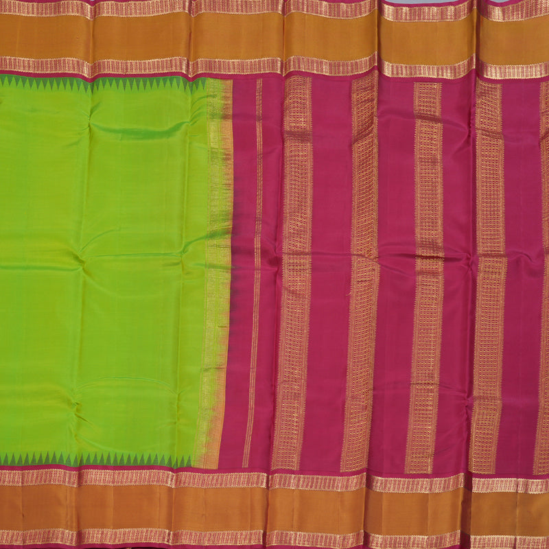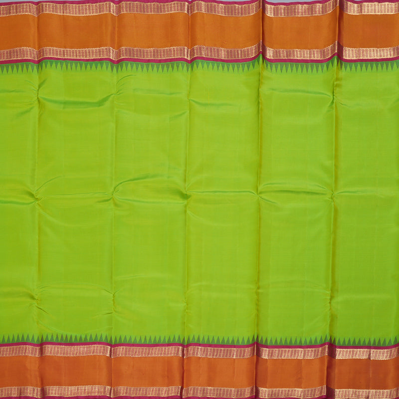 Hayagrivas Fluorescent Green Handloom Kanjivaram Silk Saree with Honey Mustard Border KBD1625A1-2