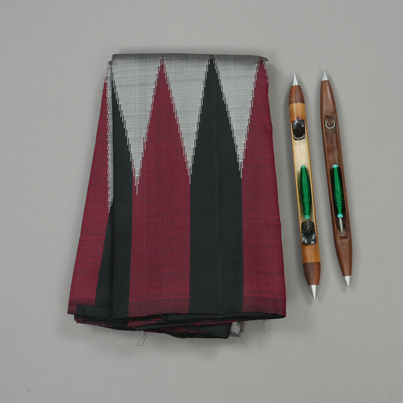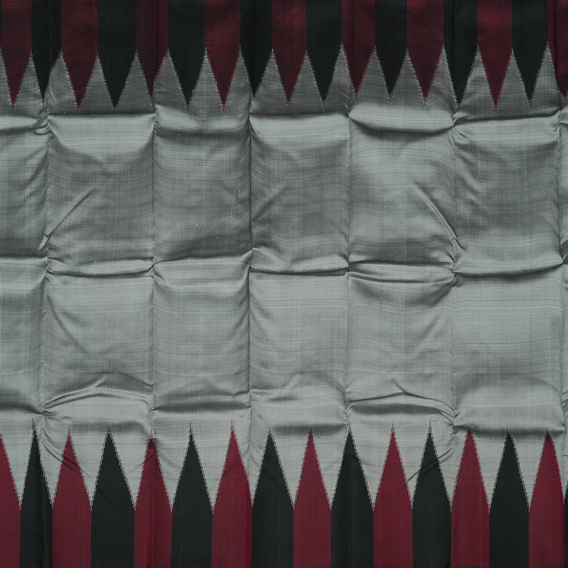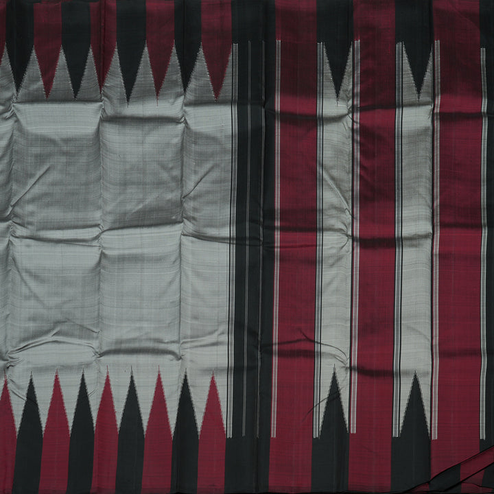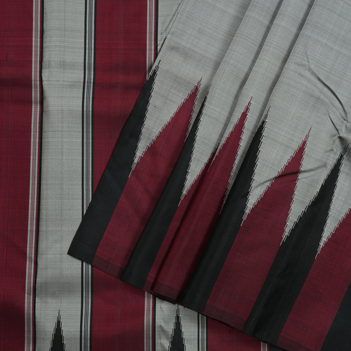 Hayagrivas Grey Handloom Kanjivaram Silk Saree with Black And Maroon Border BBD1246K3-1