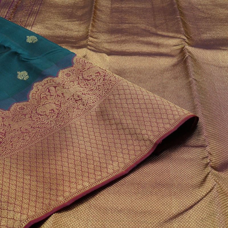 If you're someone who loves rich, heritage tones, this bottle green Kanjivaram is pure love at first sight.