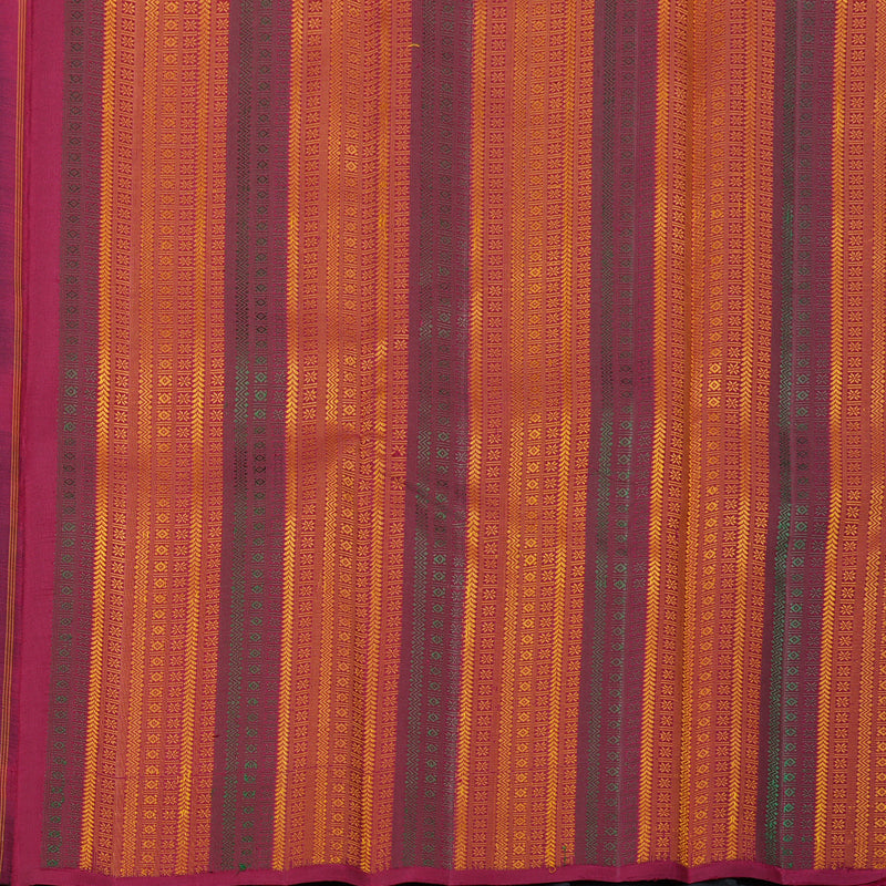 What makes this piece even more unique is its borderless design, allowing the exquisite details to stand out without distraction. The maroon pallu, adorned with intricate woven stripes, brings a striking contrast, exuding warmth and richness. Completing the look is a matching maroon blouse, ensuring a perfectly coordinated drape.