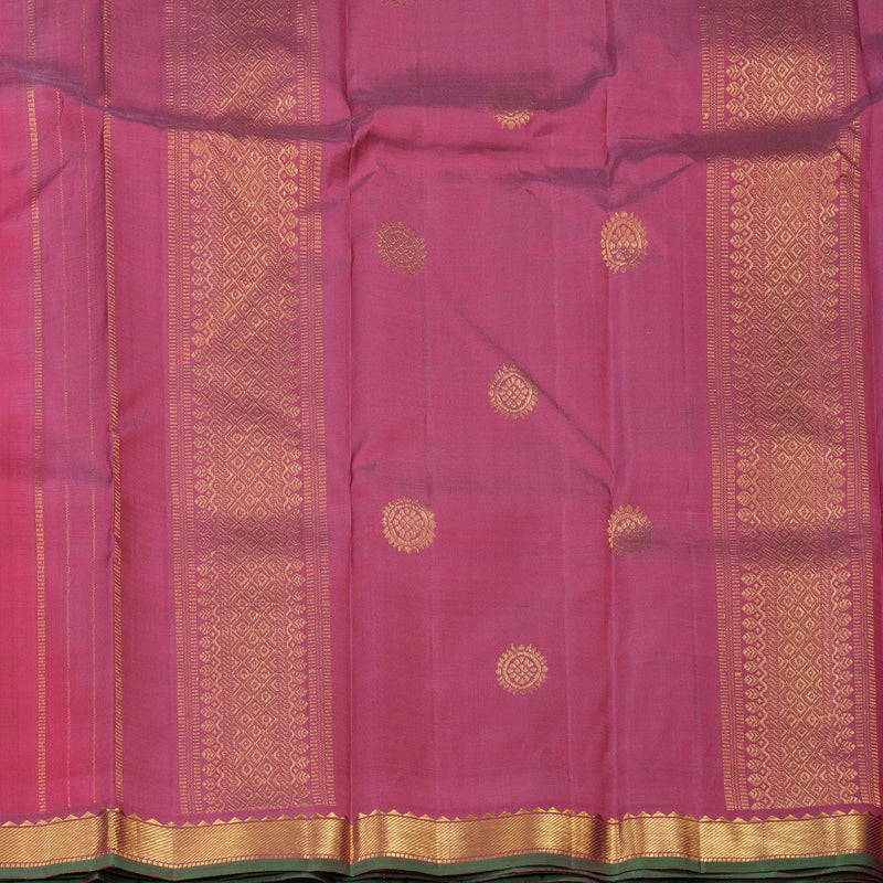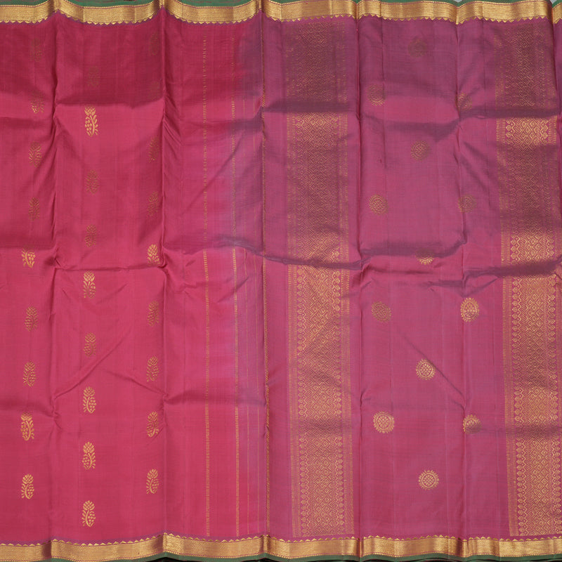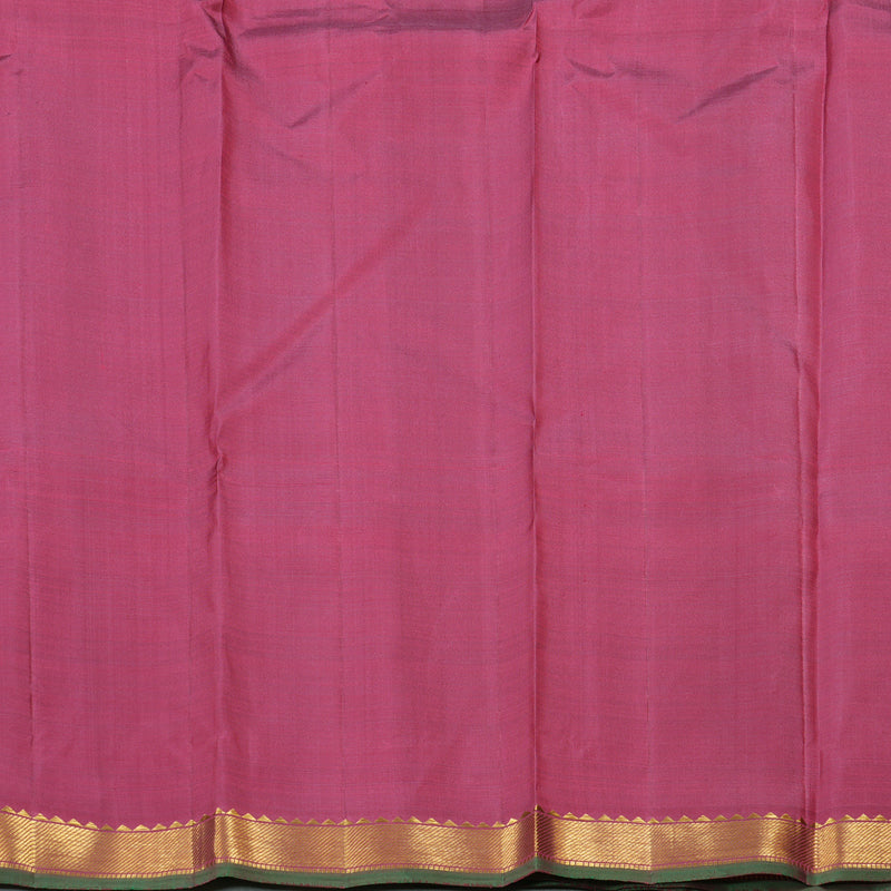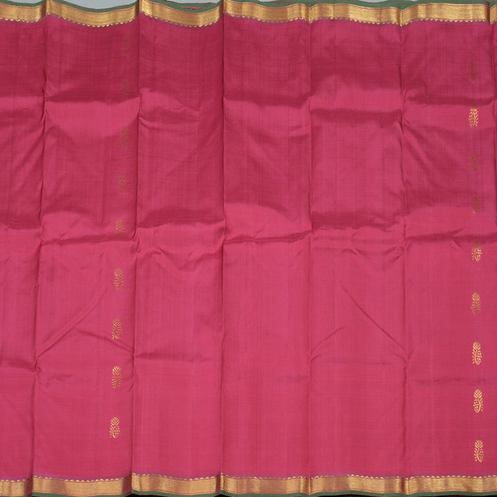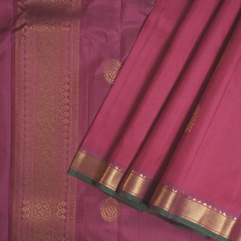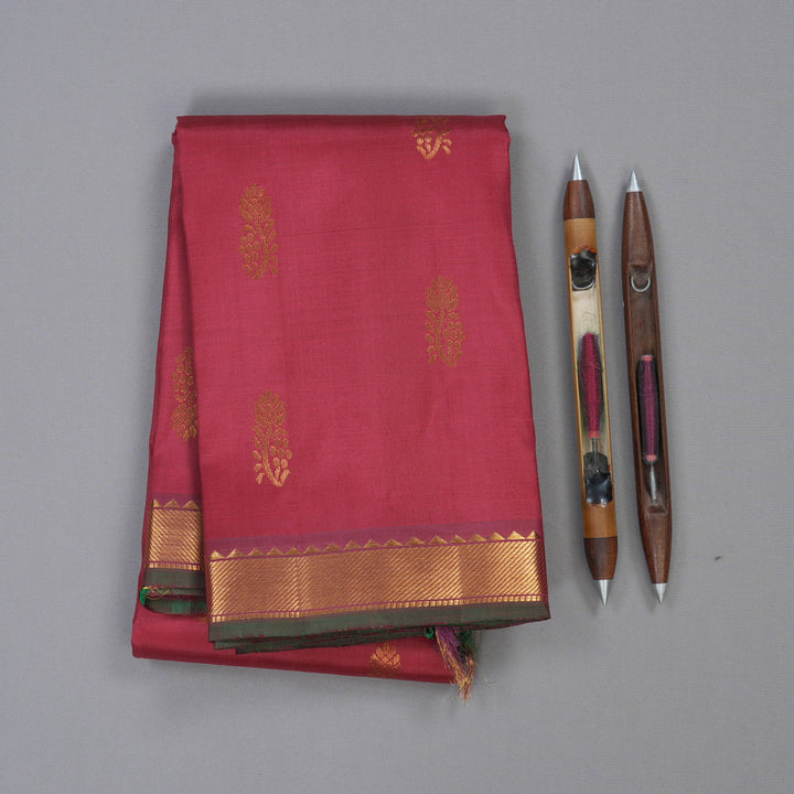The saree’s border and pallu embrace a maroonish-pink tone, beautifully complemented by intricate golden zari work that catches the light with every move. The soft silk drapes gracefully, making it an ideal choice for both casual wear and intimate celebrations. Whether it’s a family gathering or a day when you simply want to feel special, this saree ensures you carry grace and tradition with effortless style.