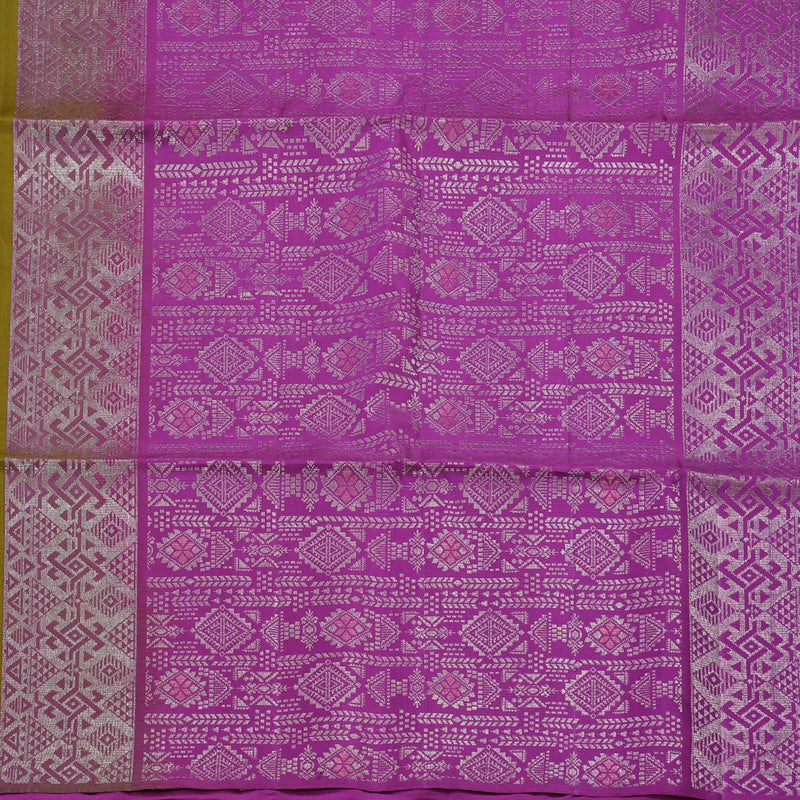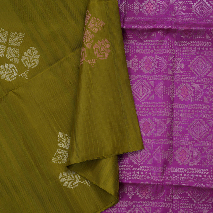 Hayagrivas Handloom Kanjivaram soft silk saree in Olive green with Purple Borderless KBD1777A2-1