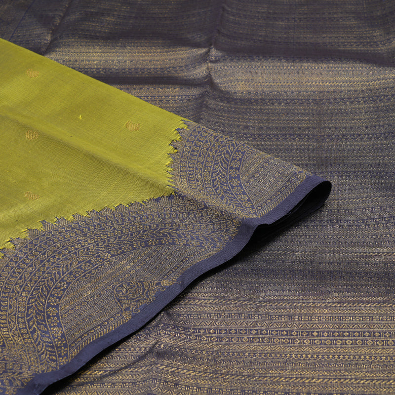 Hayagrivas Handloom Mehendi Yellow Kanjivaram Turning Border Silk Saree