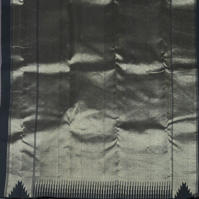 A rare blend of elegance and tradition, this lavender handloom Kanjivaram silk saree is a statement piece. The contrast black border features intricate gopuram motifs, inspired by South Indian temple architecture. The rich silk fabric drapes effortlessly, exuding grace and sophistication. This saree is a perfect fusion of contemporary charm and heritage weaving. Ideal for grand occasions, it is a treasured piece for every saree connoisseur.
