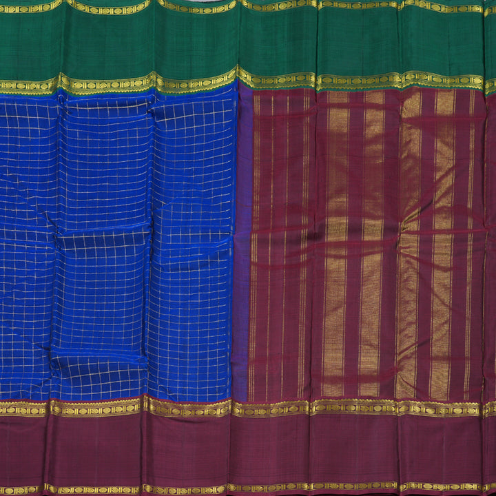 Hayagrivas Stunning Blue Handloom Kanjivaram Silk Saree with Ganga Jamuna (Green And Maroon) Border BBD1547A5-2