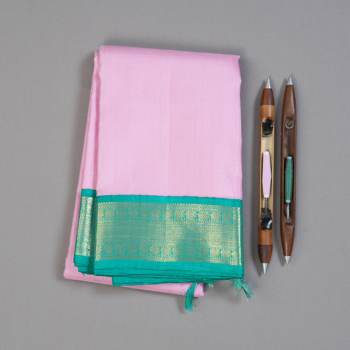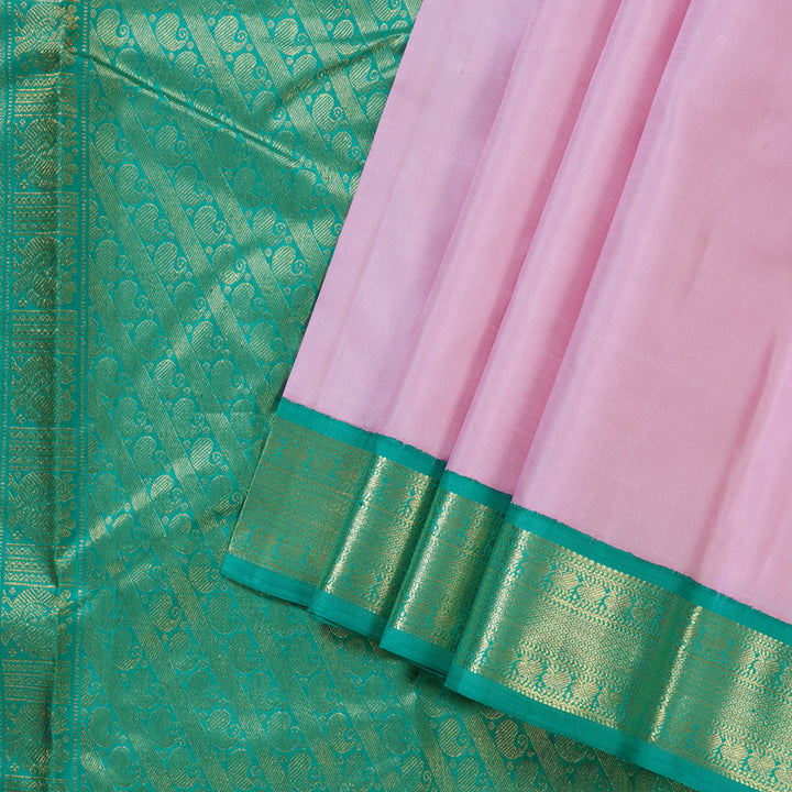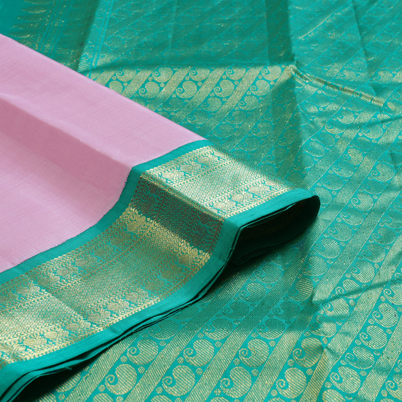 Hayagrivas Sweet Baby Pink Handloom Kanjivaram Silk Saree with Sea Green Border KBD1536A3-5