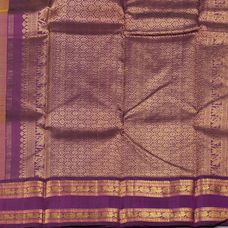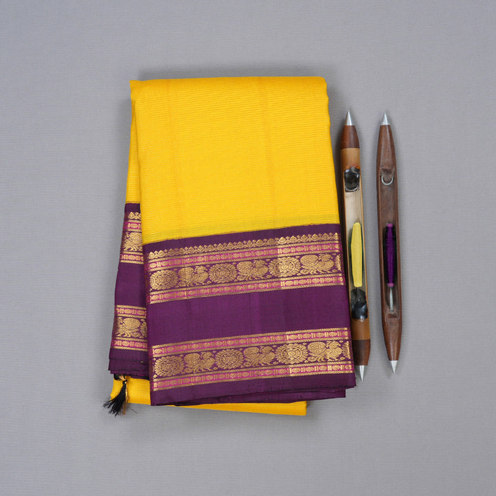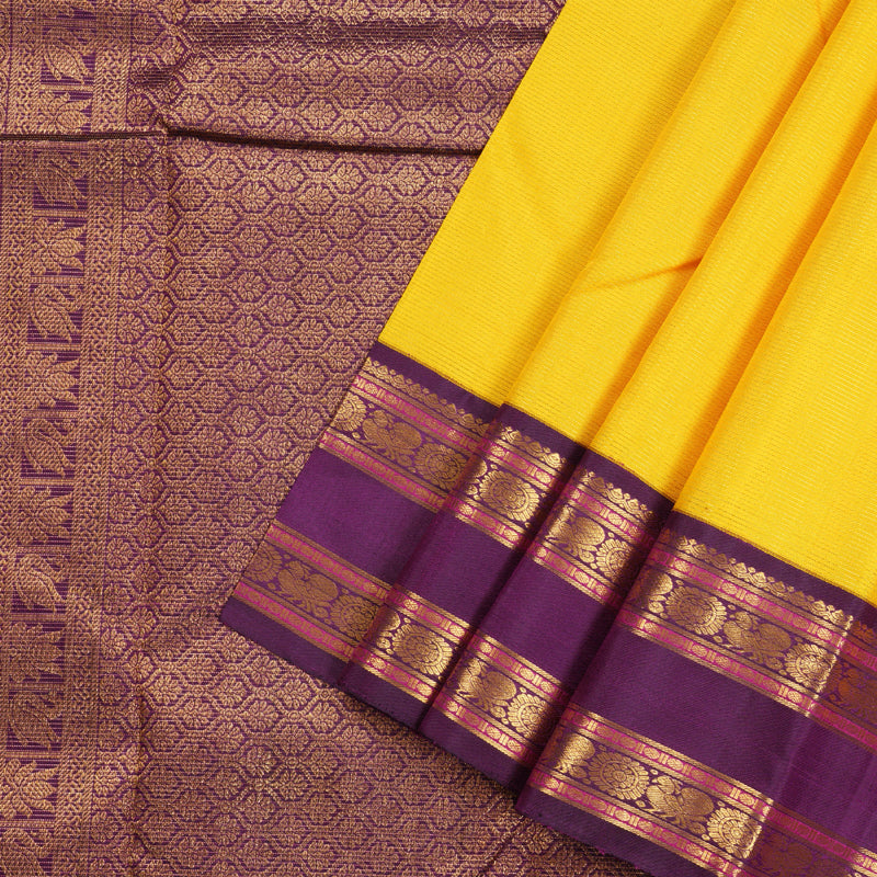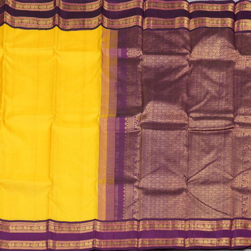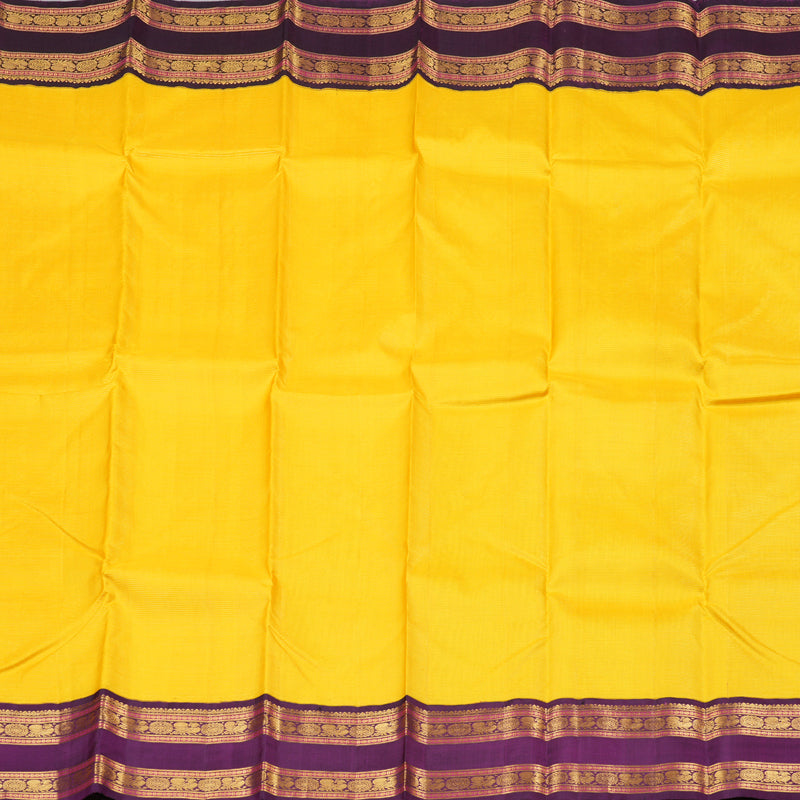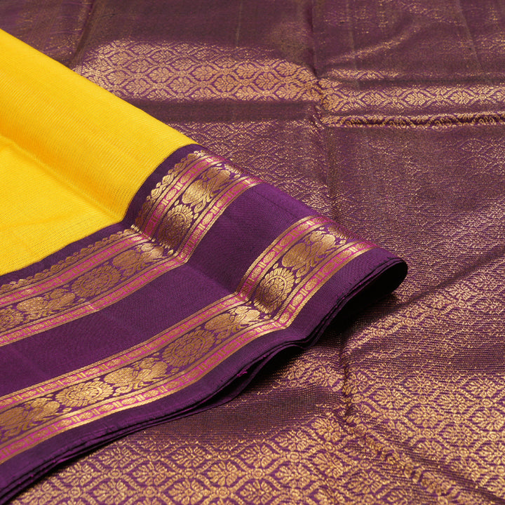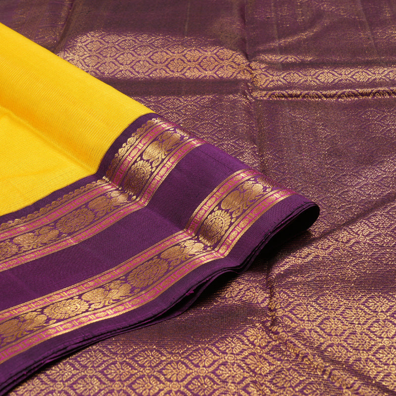 Hayagrivas Vibrant Yellow Handloom Kanjivaram Silk Saree with Dark Purple Border BBD1316L10-1