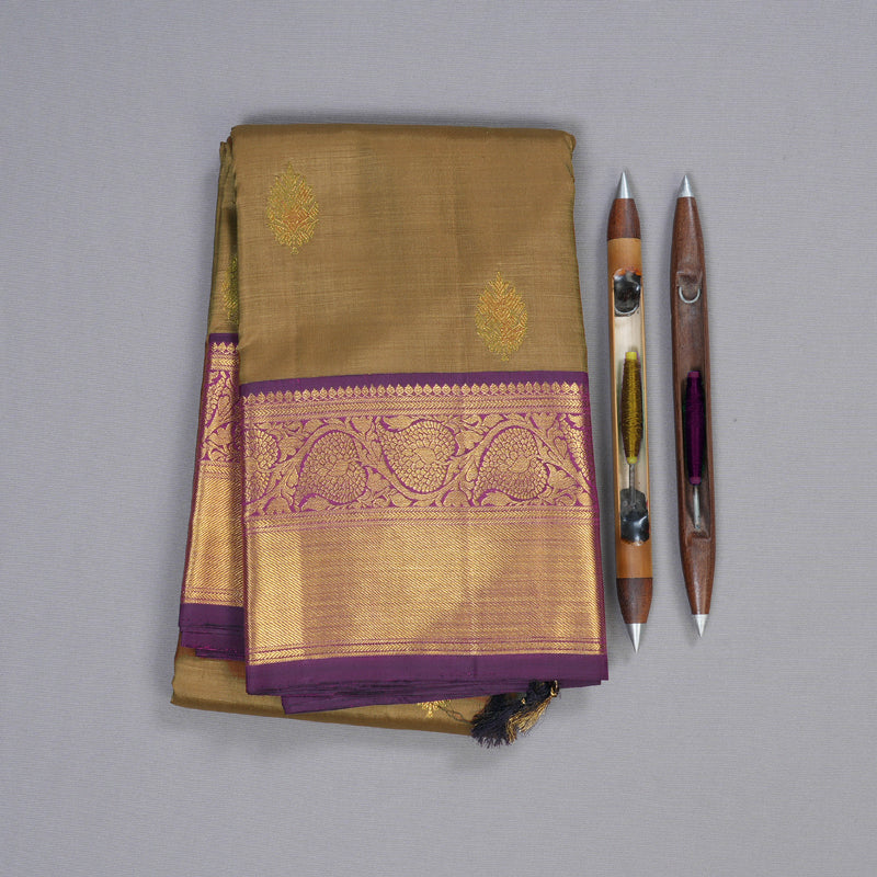 Hayagrivas Wheat Brown Handloom Kanjivaram Silk Saree with Purple Border BBD1547A12-3