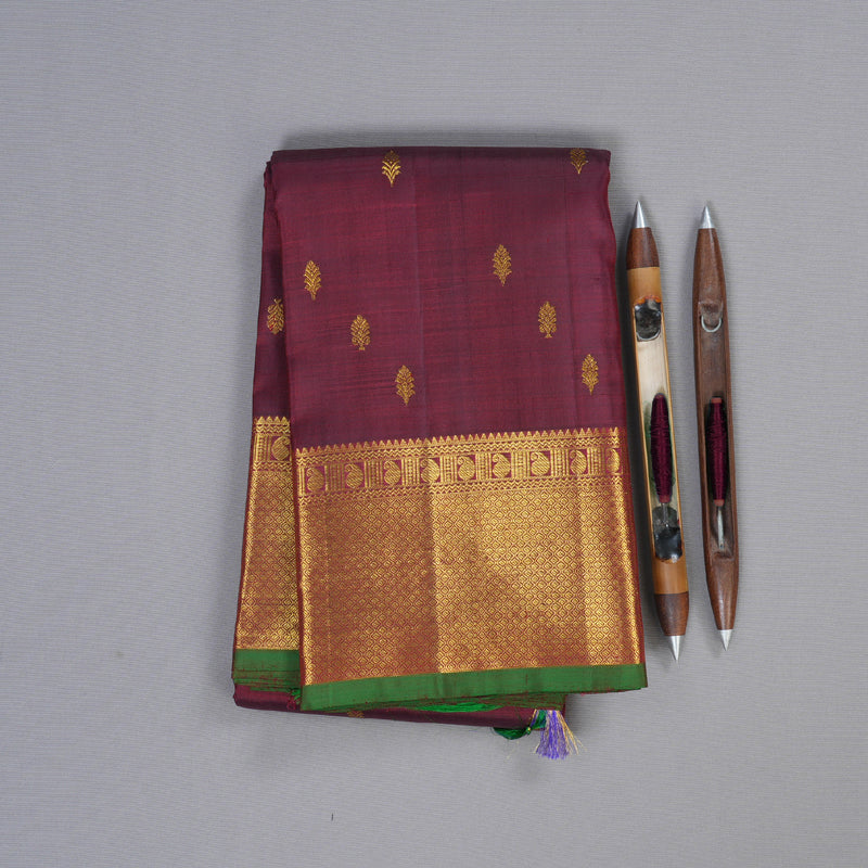 Hayagrivas Wine Maroon Handloom Kanjivaram Silk Saree BBD1445L4-1